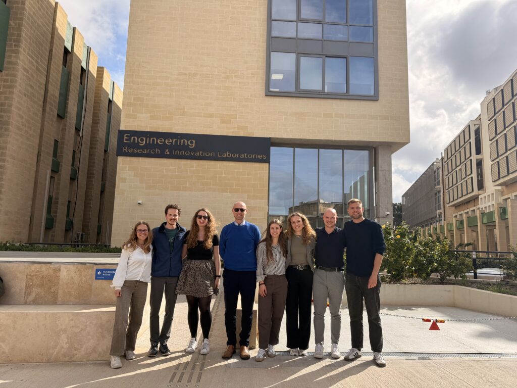 Unsere Reise startete gemeinsam am Flughafen München. Nach nur zwei Stunden landeten wir bei 20°C und machten uns per Uber auf den Weg nach Gżira. Da wir eine vergleichsweise große Gruppe waren, hatten wir zwei Wohnungen im selben Haus gemietet. Das Herzstück unseres WG-Lebens war die Dachterrasse einer der Wohnungen. Hier starteten wir mit gemeinsamen Frühstücken in den Tag oder ließen die Abende bei Sonnenuntergang ausklingen. Für gemeinsame Teammeetings nutzen wir dafür die andere Wohnung, da diese platztechnisch mehr bot – eine perfekte Kombination beider Wohnungen. Die Lage war ebenfalls klasse: Zur Universität liefen wir etwa 20 Minuten und für den sportlichen Ausgleich gab es ein öffentliches Schwimmbad sowie eine Laufstrecke direkt um die Ecke. Und wenn uns der Sinn nach Kultur aber auch Trubel stand, waren wir mit dem Uber in nur 10 Minuten im historischen Valletta.
